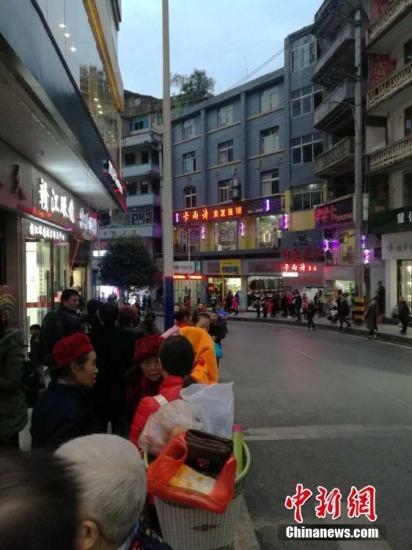 图为地震后在重庆彭水县城民众到街上避险。网友供图