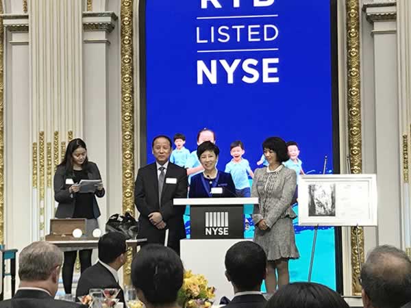 美国东部时间2017年9月27日,红黄蓝董事长曹赤民、总裁史燕来、首席财务官魏萍在纽交所早餐会上致辞。