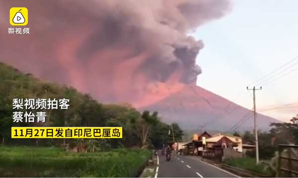 实拍巴厘岛火山喷发现场视频