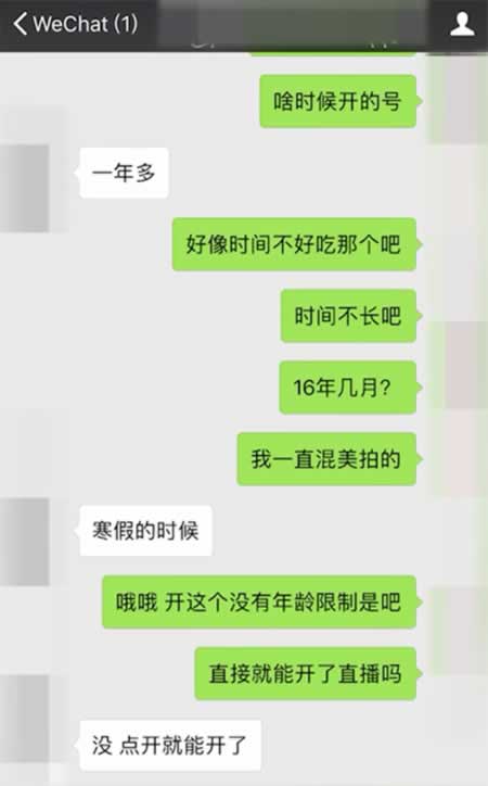 知情人士还提供了与一名自称2005年出生的主播的聊天记录。