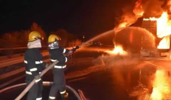 12月5日19时44分,山西长治市武乡县消防大队接到报警,长太高速太原往武乡方向距武乡县高速服务区约5公里处,一辆行驶中的半挂货车着火。接警后,长治支队武乡、襄垣大队与晋中支队榆社大队消防官兵用了近3个小时将大火扑灭,没有人员伤亡。
