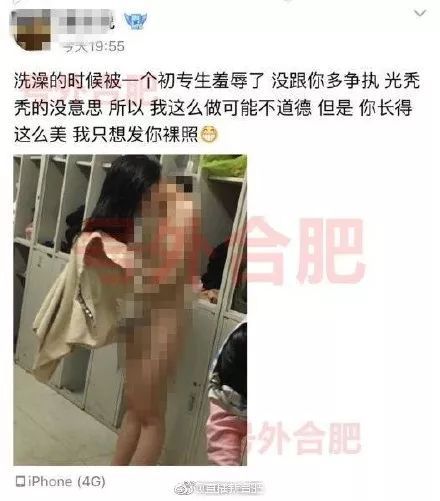 微博网友@直播新合肥 12月7日发帖称,因在澡堂发生争执,出于报复,合肥幼儿师范高等专科学校一名女生把其他女生裸照发至QQ空间。