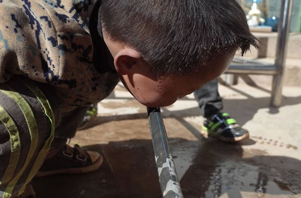 大凉山深处的昭觉县四开乡位于四川省西南部,是一个相对比较贫困的地区。因为近期天气寒冷,自来水管里的水非常的冰,然而这里的孩子口渴了还是会不顾一切的拿起一个大水瓢、或爬在水龙头喝水,甚至连水管破损处喷出的水也不放过。