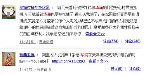 网友@入戏太深的那个谁 : 释放华涌!华涌犯了什么罪?!我请问各位华涌犯的是照相罪还是实事求是罪?!