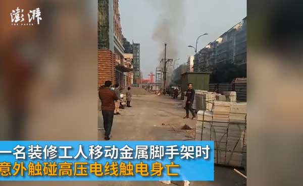 12月23日,四川宜宾,长宁县某在建工地一名装修工人移动金属脚手架时,触碰高压电线触电身亡。触电后该工人身体不停闪烁火光。目前当地警方及安监等部门已介入调查。