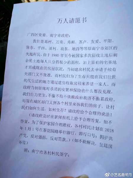 网友@不离不弃6438793544:别以为山高皇帝远政府做那些丧尽天良的事,广西省南宁市良庆区良庆镇强拆迁无补偿政府怎么腐败、让伏那坡上千村民、老老少少、无家可归,流离失所、只能在路边吃饭。现在也下雨让他们什么过,谁来帮我们度过这个冬季!!