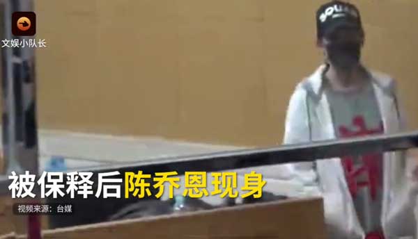 陈乔恩酒驾被捕,早上9点戴著口罩遭大安分局依照公共危险罪移送中国台北地检署。律师已交10万台币保金将其保释。