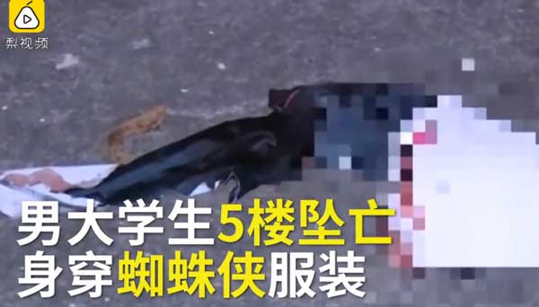 实拍男大学生扮蜘蛛侠坠亡 疑玩极限自拍不慎坠楼