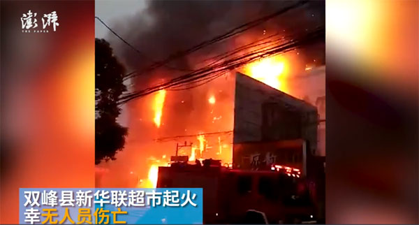原标题:餐馆煤气罐爆炸:湖南双峰一超市着火