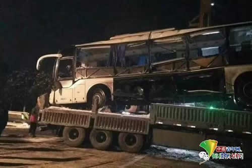 江苏大屯铁路道口一大巴车与火车相撞 造成2人死亡1人受伤