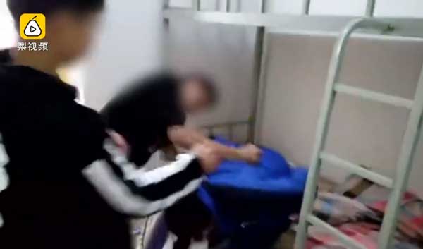 痛心!实拍贵州黎平第七中学男生遭多人围殴 蒙被子踢踹