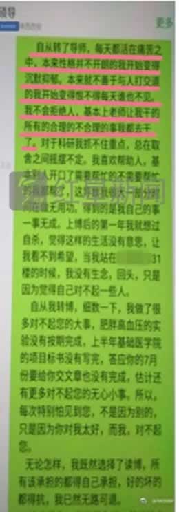 文章称,“12月18日周老师答应帮杨联系出国事宜,他很高兴想考个英语资格证。12月21号杨却因学英语而被周老师批评,让他明白周老师不会放他出国……出国无望,学术无果,这直接导致杨产生了巨大的精神压力而作出了轻生的行为。”