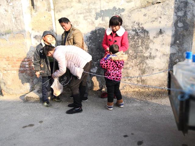 用绳子牵俩孩子送水的叫逯松涛,菏泽市曹县古营集镇逯胡同村人。他29岁的哥哥自幼智障,嫂子和哥哥情况类似。十多年前,在大家的撮合下,这对苦命人走到了一起。结婚第二年,哥嫂便生了个儿子,家里人特别高兴,等孩子长大了家就有人照料了。