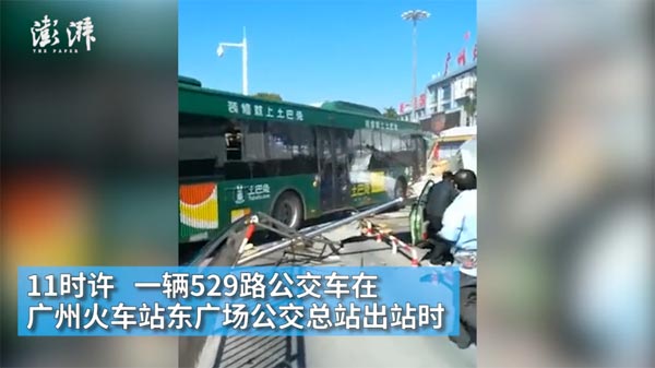 广州529路公交车疑失控连撞4车致3人伤视频截图