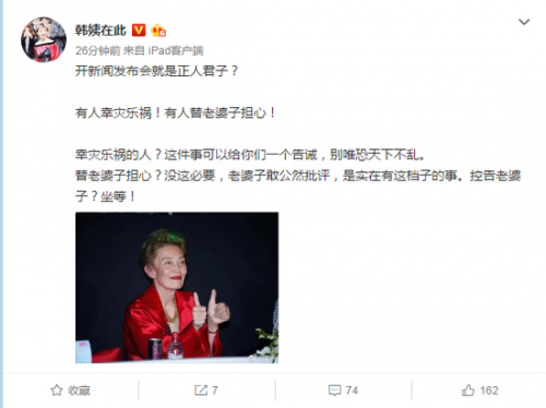 不过就在曾志伟新闻发布会结束后不久,韩颖华就发文来回应曾志伟的这次发布会内容,原文如下: