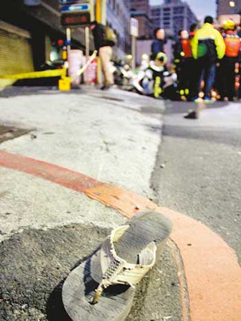 女子头部坠地,全身血流如注,当场死亡;男婴边流血边大哭,警消紧急将2人送往北市新光医院、马偕医院急救。女子急救后宣告不治,男婴脑部瘀血,情况并不乐观。
