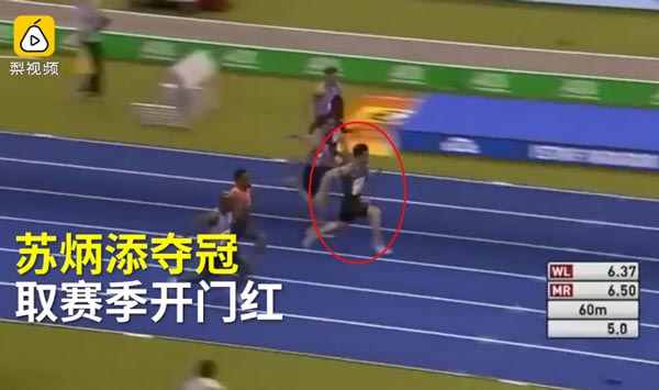 实拍苏炳添60米6秒55夺冠视频 中国速度获亚洲最佳!