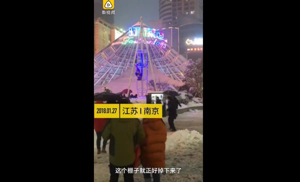原标题:南京一商场顶棚被积雪压塌,3人被砸