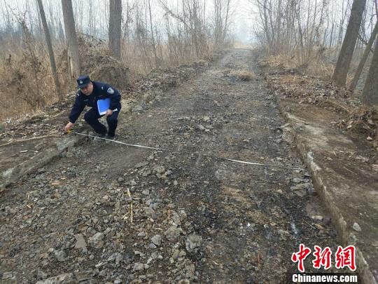 警方正在对被盗路面进勘测。警方供图