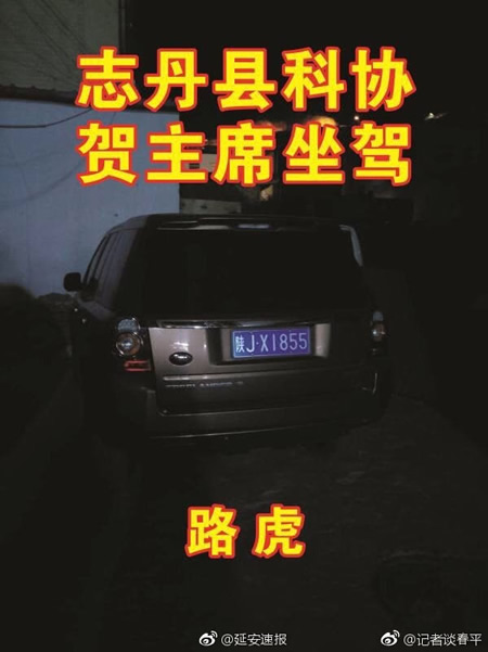@记者谈春平 当日在微博上还晒出一份疑似提交给志丹县纪委的举报信,以及这辆路虎车。