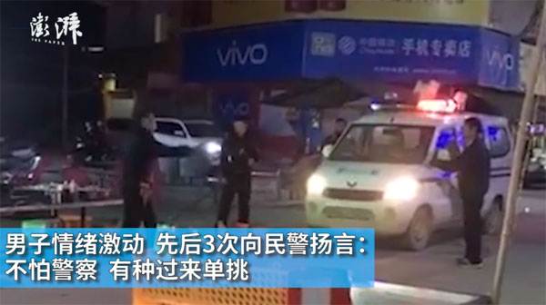2月3日,广西贵港丹竹镇,一男子手持猪肉刀追砍附近群众,并向赶来的民警扬言:不怕警察,有种单挑。民警开枪将男子制服,经调查男子曾有精神病史,目前案件正在处理中。