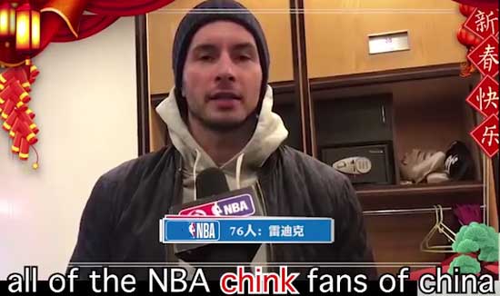 这名球员就是雷迪克,在视频中,众多NBA球员都用英文表达了对中国人民的春节祝福,有的球员还学说中文,而在雷迪克的部分,他一开口就让人觉得不对劲,他直接说:“I wish all of the NBA chink fans of China……”