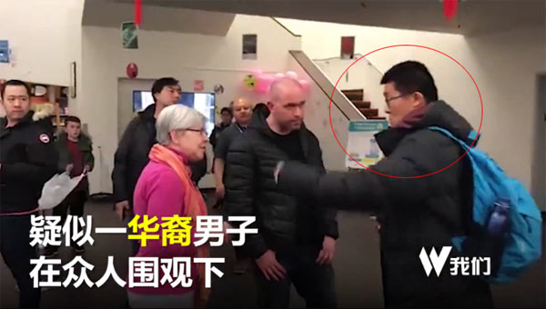 加拿大华裔男子狠踹老太太肚子后逃跑视频