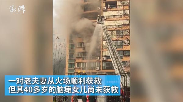 原标题:武汉居民楼着火,军人冲火场救脑瘫女子