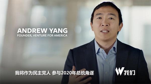 当地时间2月2日,杨安泽在网上发布视频,宣布参加美国2020年总统大选。杨安泽来自纽约,是华人企业家。2017年11月,他向联邦选举委员会提交书面申请,成为第二个参选美国总统的华人。竞选口号是“人性至上”,他认为:相比于高新技术,应当首先保障民众就业。截至2月14日,他已募得13万美元竞选资金。接下来,他要获得纽约州选民的支持。要最终代表民主党角逐,他还要通过两轮党内提名。目前,美国各大媒体并未将其列为热门人选