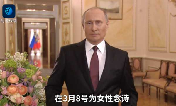 3月8日为国际劳动妇女节。节日当天,俄罗斯总统普京照例送上祝福视频,并念了一首赞