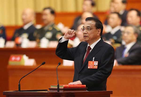 根据《第十三届全国人民代表大会第一次会议主席团关于宪法宣誓的组织办法》,大会举行宪法宣誓仪式,国务院总理李克强进行宪法宣誓。