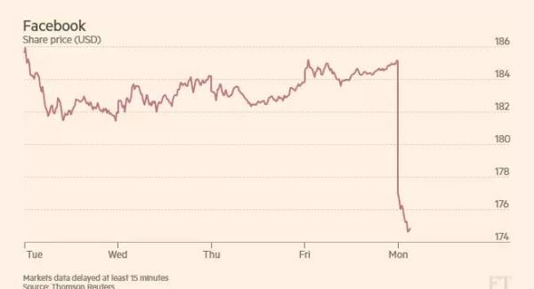当地时间3月19日,Facebook股价经历了4年以来的最大下跌,跌幅达6.77%。市值蒸发367亿美元。投资者抛售Facebook股票的同时,其他科技巨头公司的股价也受到影响,谷歌母公司Alphabet下跌3.03%,苹果和亚马逊下跌1.53%。