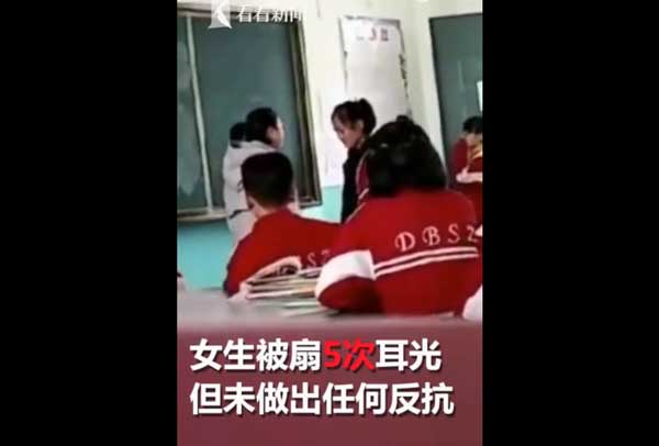 (原标题:初中老师当众体罚女学生 25秒内连扇5个耳光)