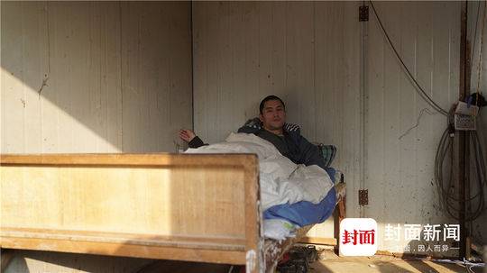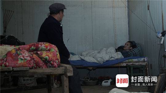 铁皮活动房还在,门对面是个斑驳的木床,因为儿子回来,冀太荣在旁边支起一个木架子,覆上一层纸板,遮住了两个大窟窿,算是他自己的床。两张床靠得很近,冀太荣说,“睡旁边方便照看他。”