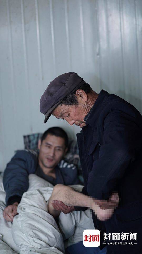 冀太荣今年67岁,腿脚大不如前,已经抱不动儿子了,以前还可以把他抱上轮椅,现在完全使不上力。冀中星从前双手健全的时候,多少能用上些力,两条腿也还能弯曲,白天可以坐在轮椅上,自己拿点东西没有问题。现在他任何一点小事都要父亲帮他完成,从喝水吃饭,到大便小解,他更加离不开父亲。