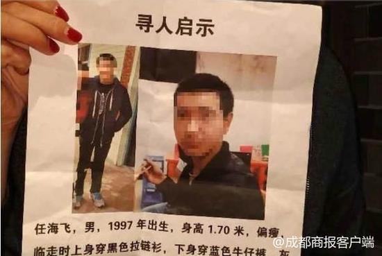 西南科技大学大三学生任海飞,3月11日失踪后,父母从广东赶回绵阳寻找,印制上千份寻人启事。3月25日,任海飞在游仙区忠兴镇被发现,并确认遇难。26日凌晨零时许,绵阳警方通报,经勘查,未见他人加害痕迹,死亡原因公安机关正在进一步调查鉴定中。