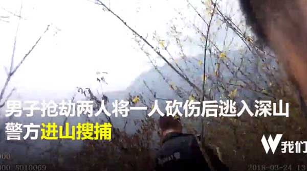实拍男子持刀抢劫砍伤一人后逃入深山视频