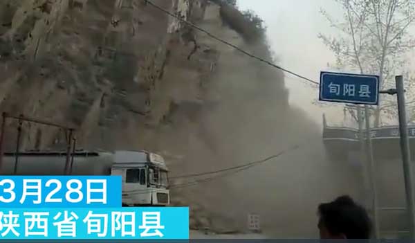 实拍陕西山体塌方:山岩顷刻垮塌公路中断