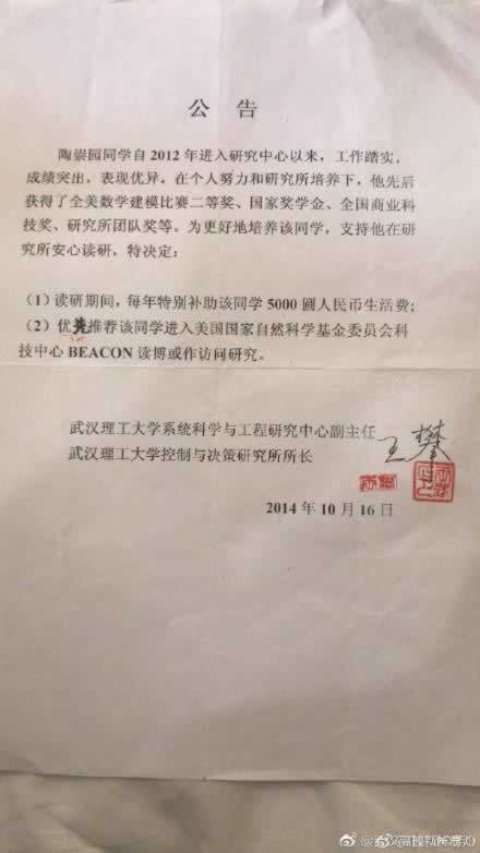 近日,微博上热传一条信息:武汉理工大学研究生不堪导师长期压迫而跳楼身亡。下面是来自于网友@陶崇园姐姐,的微博。