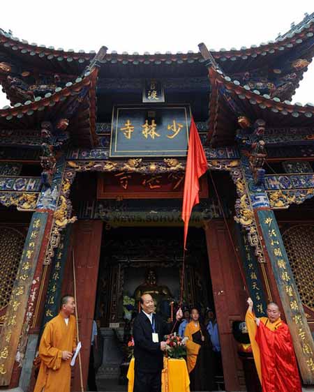 永信法师为官渡少林寺揭牌 (图片来源:资料)