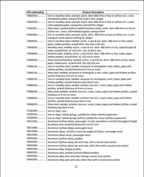 另外,从清单中还可以看到,钢和铝在清单中整整占了3页的份额。