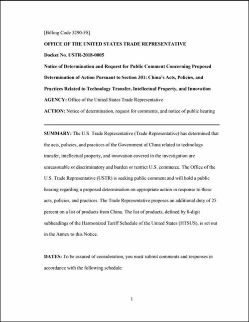 【观察者网综合】据新华社报道,美国3日依据“301调查”结果公布拟加征关税的中国商品清单。这一违背国际贸易规则的做法遭到多方反对。