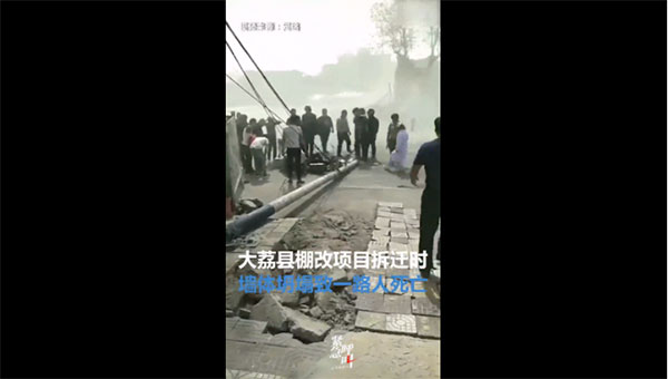 陕西大荔棚改项目拆迁墙体坍塌致过路人死亡现场视频截图