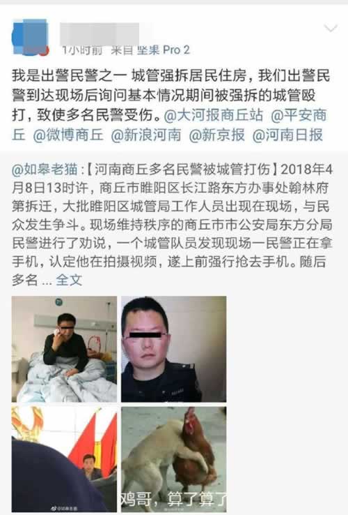 关于网传“商丘多名民警被城管打伤”的情况通报