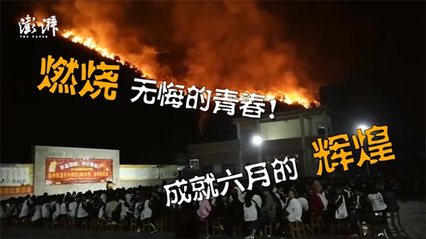 广西梧州某中学淡定开中考动员大会 后方山上熊熊大火视频截图