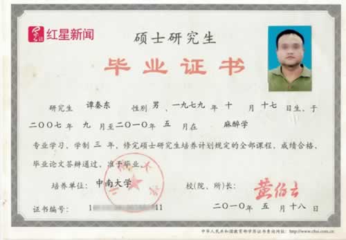 谭秦东,现年39岁,2010年中南大学麻醉学专业硕士研究生毕业,获医师资格证书和临床执业证书,曾在南方医科大学第三附属医院担任麻醉医师,担任过制药公司的医学事务专员和顾问,2015年起自主创业开办医药科技公司。