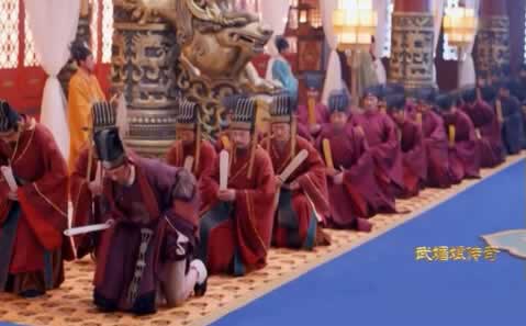 《武媚娘》5大穿帮镜头第二穿帮镜头:长孙大人在下跪的时候露出了大腿。
