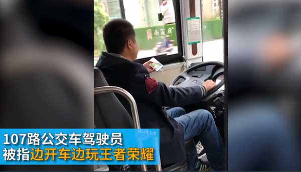 4月14日,湖南长沙。一网友发文反映称,在乘坐107路公交车时,司机边开车边打王者荣耀,“把乘客生命安全当儿戏”。目前,该驾驶员已被停工,要求接受学习。