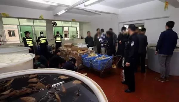 2017年3月17日,根据群众举报,结合前期线索排查的情况,深圳市公安局罗湖分局联合市市场稽查局在龙岗区平湖镇顺平市场查获一个加工销售毒牛百叶等水产品的窝点,当场抓获犯罪嫌疑人张某某、周某、杨某某等22人。民警在一楼、四楼的冻库内查获牛百叶原材料约9300公斤、牛百叶成品约15500公斤。在四楼生产车间内还查获牛百叶半成品约1320公斤;来路不明的氢氧化钠1425公斤、过氧化氢950公斤,现场触目惊心。随后,民警根据该火锅食材经营部的销售记录,顺藤摸瓜,抓获了在本市各大档口销售该批牛百叶的犯罪嫌疑人刘某等13人。