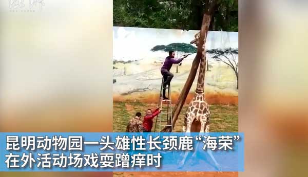 实拍昆明动物园长颈鹿蹭痒头卡枝杈死亡视频